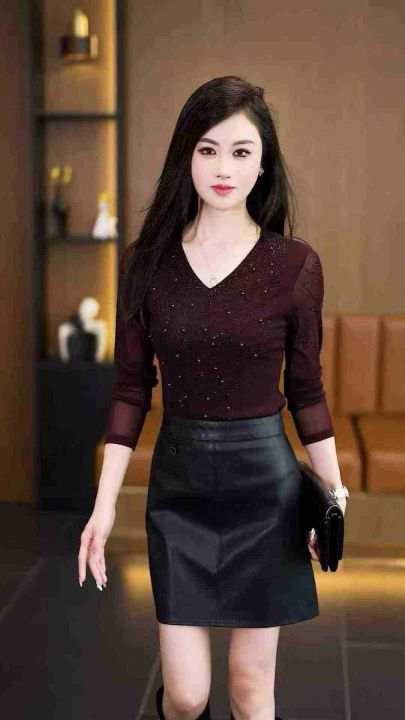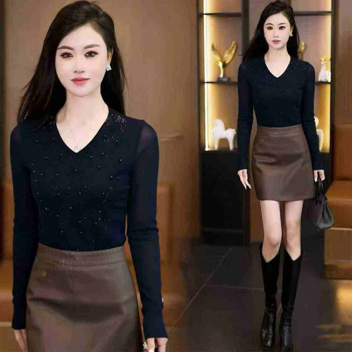 韩版V领钉珠烫钻长袖T恤女款 1913件 1-7码 分货➕1 大货黑色少(货号329#58)