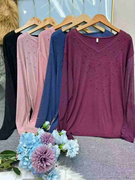全清6.9元韩版V领钉珠烫钻长袖T恤女款 1913件 1-7码 ...