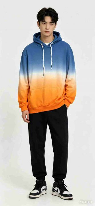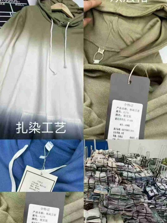 渐变/扎染/连帽卫衣,纯棉毛圈面料,落肩大版宽松卫衣,数量2560件左右,单款多个颜色,码数M-L-XL-XXL-XXXL,独立包装吊牌,分货➕1元/件。
