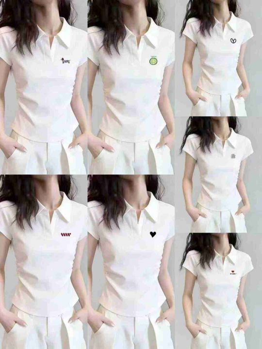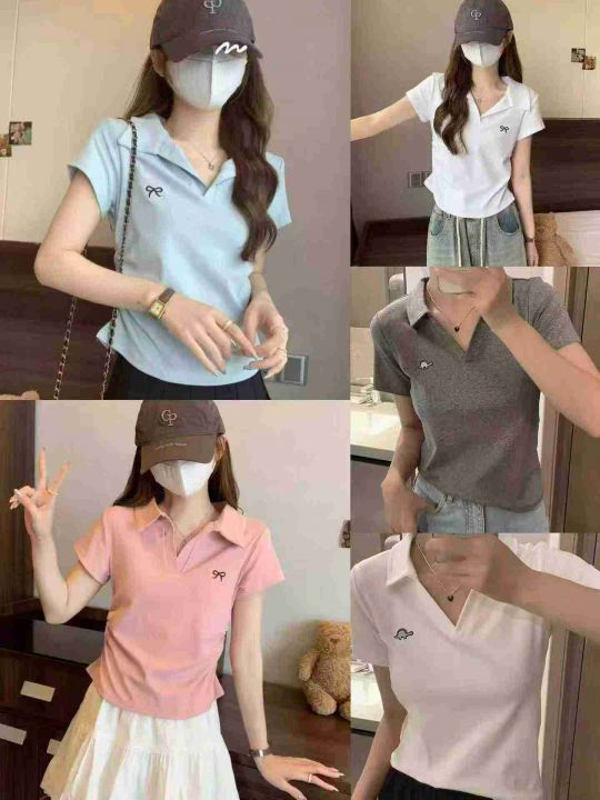 ☕️纯棉收腰polo领正肩短袖T恤女夏季甜辣妹显瘦短款...