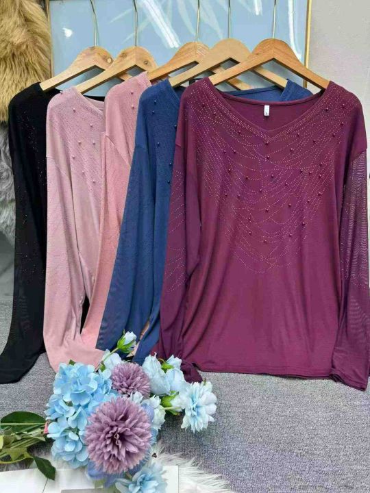 全清6.9元韩版V领钉珠烫钻长袖T恤女款 1913件 1-7码 ...