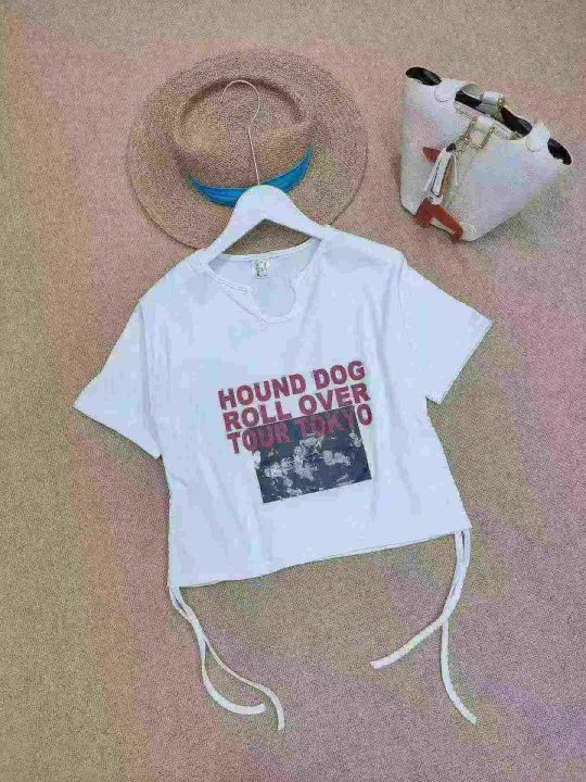 [月亮]:设计感双抽绳正肩短袖辣妹T恤