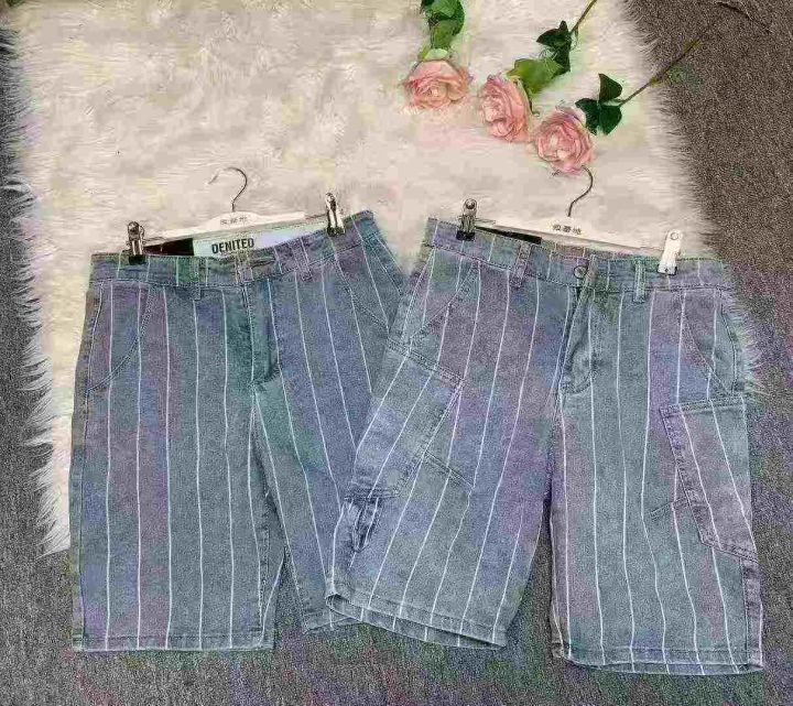 弹力条纹短裤男生外穿夏季薄款休闲中裤网红潮流百搭五分牛仔裤300件,图片款式,独立包装带腰牌,尺码M~L福利价7.8元