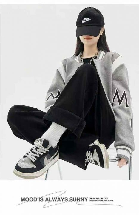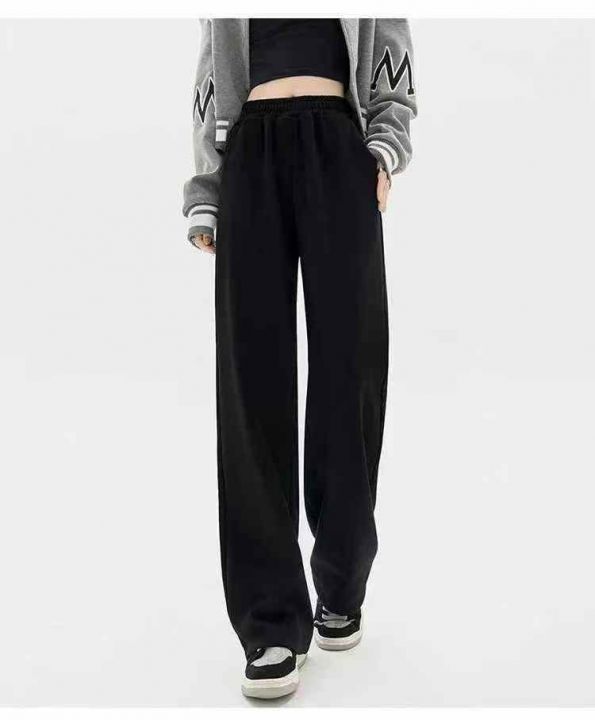 秋冬黑色运动加绒女装直筒休闲裤,面料厚实有质感,有...