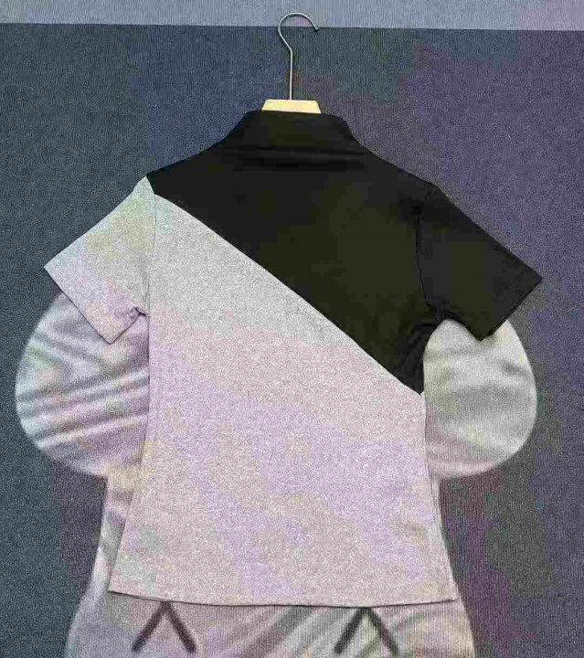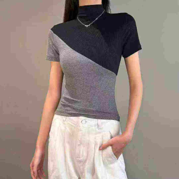 天猫在售款350件左右高品质夏季半高领拼色螺纹短袖T恤,单款单色,高弹力,码数S-XL,独立包装带吊牌
