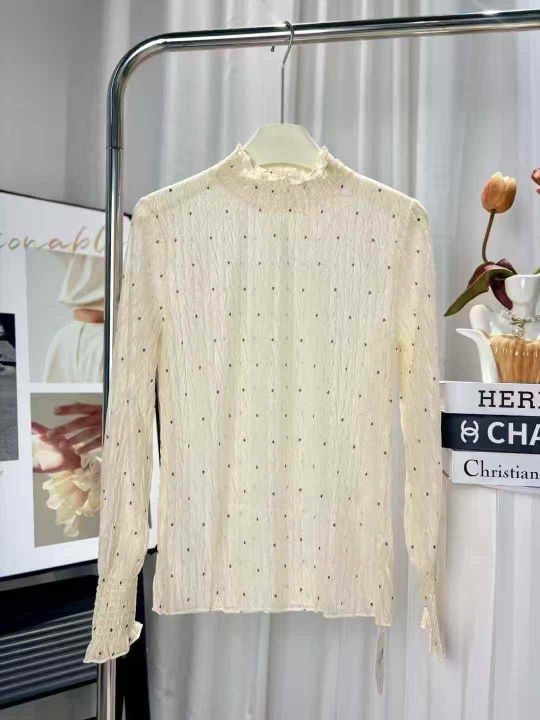 150件左右薄款透视波点蕾丝搭配打底衫女长袖内搭洋气...