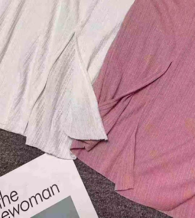 冰丝螺纹短袖,分叉下摆设计,整款两色,独立包装