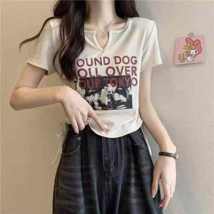 1.5清电商仓回收72件夏季废土风美式复古印花y2k街头小众修身短款T恤女,码...