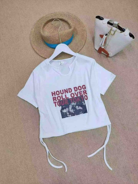 [月亮]:设计感双抽绳正肩短袖辣妹T恤