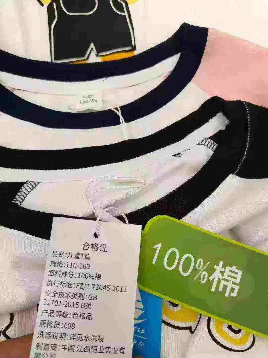 品牌童装小熊印花logo纯棉T恤,数量1500件左右,尺码110--160,整款三个色,纯棉面料后领包边,独立包装带吊牌,货品整洁质佳