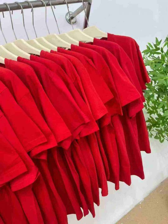 ☕️红色220克纯棉短袖t恤男女夏季宽松显瘦潮牌美式in...