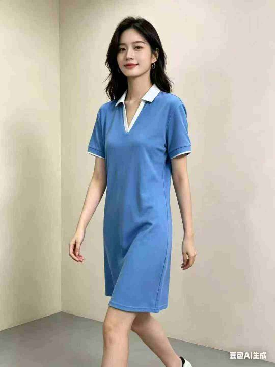 7.8元清新款POLO翻领连衣裙,大版宽松遮肉版型,数量2...