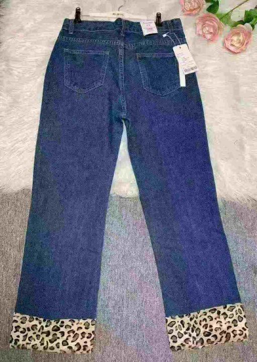 高腰牛仔直筒裤显瘦小个子深蓝美式豹纹直筒烟管裤180件,独立包装带吊牌,尺码S~3XL,全清福利价8.8元