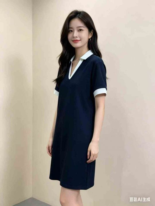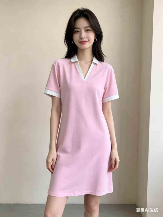 7.8元清新款POLO翻领连衣裙,大版宽松遮肉版型,数量2...