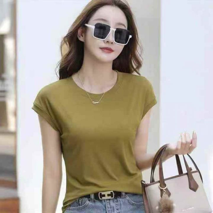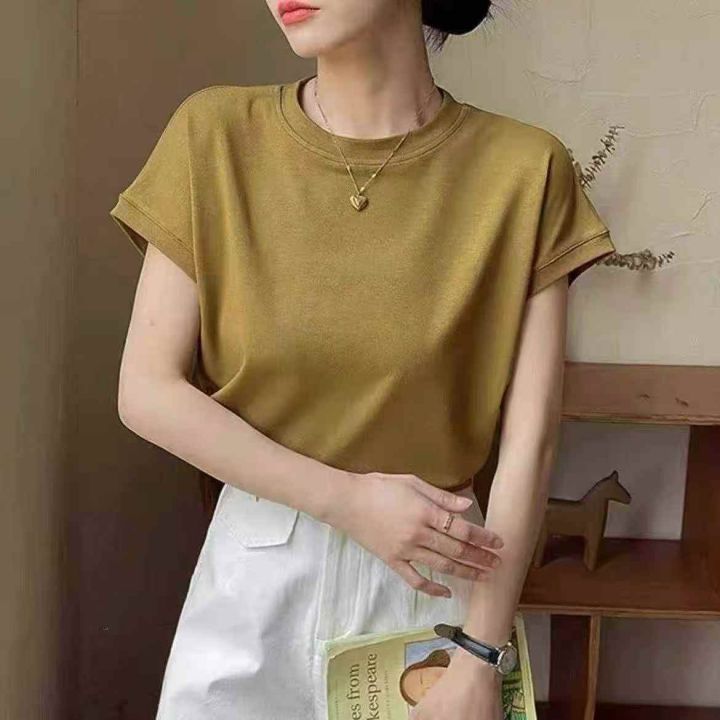 350件冰丝螺纹靓妹T,高弹力,单款单色芥黄色,独立包...