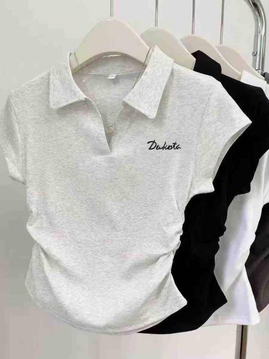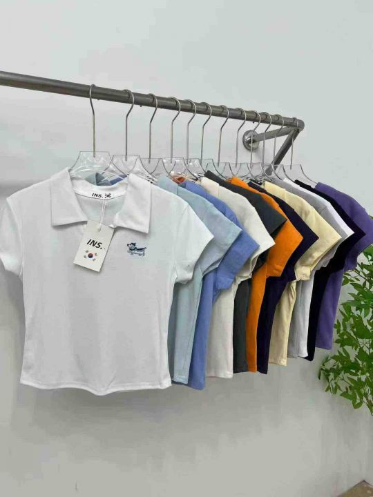 ☕️纯棉收腰polo领正肩短袖T恤女夏季甜辣妹显瘦短款...