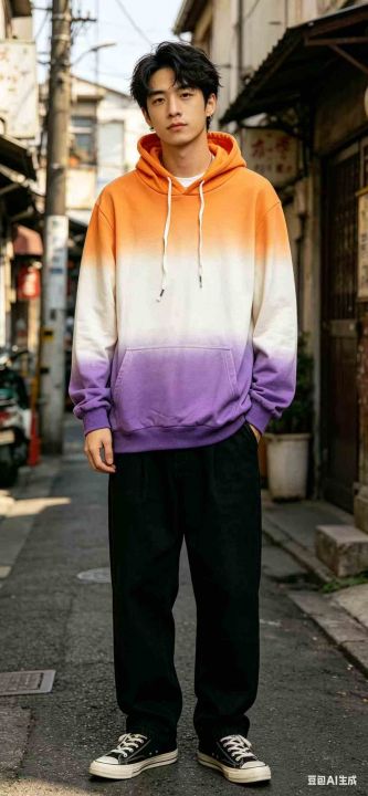 渐变/扎染/连帽卫衣,纯棉毛圈面料,落肩大版宽松卫衣,数量2560件左右,单款多个颜色,码数M-L-XL-XXL-XXXL,独立包装吊牌,分货➕1元/件。