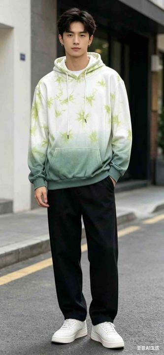 9.9元清渐变/扎染/连帽卫衣,纯棉毛圈面料,落肩大版...