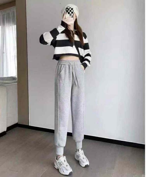[月亮]:秋冬加绒小个子抽绳休闲束脚卫裤
