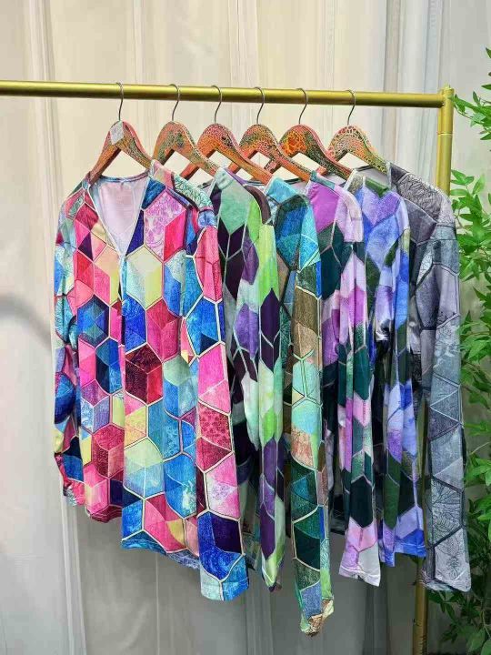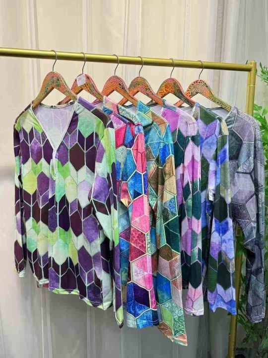 1200件\'欧美女装亚马逊爆款街头潮人几何魔方印花V领拉链衫长袖T恤女\'独立包装\'码数S-5XL,分货➕1,货号001#30