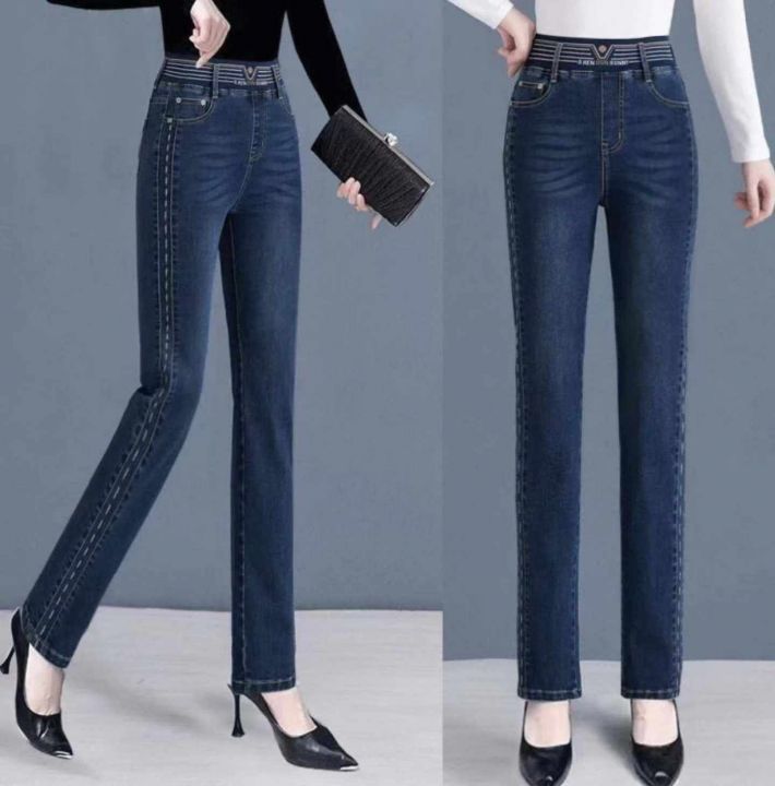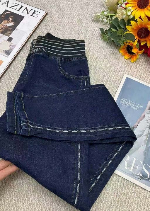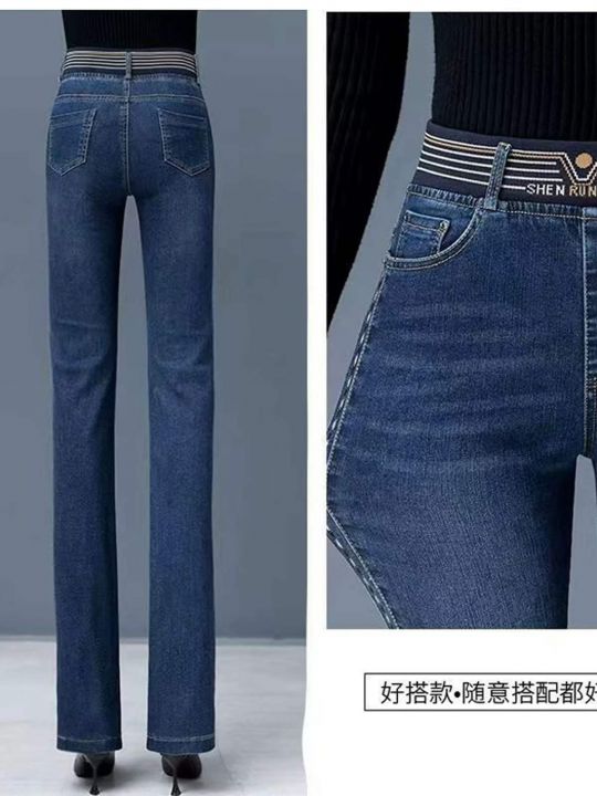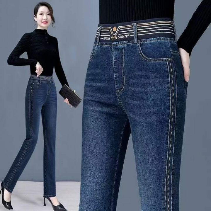 春季新款高腰高弹力松紧腰中熟宽松百搭牛仔裤,独立包...