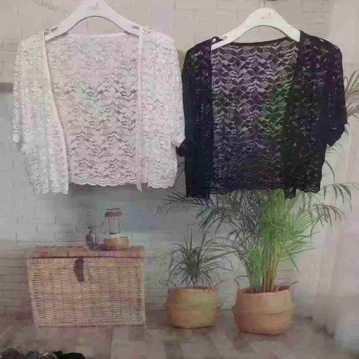 3.5元[爱心][爱心] 蕾丝镂空小披肩女夏季新款七分袖开衫,独立包装,码数s-3xl,数量150件左右。