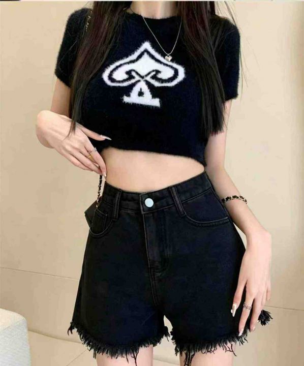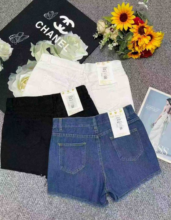 夏季新款设计款毛边洗水棉牛仔短裤,独立包装带腰卡,...