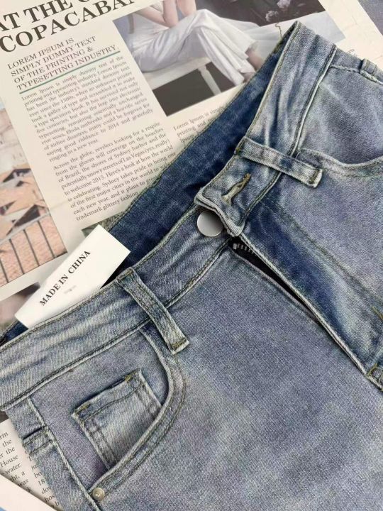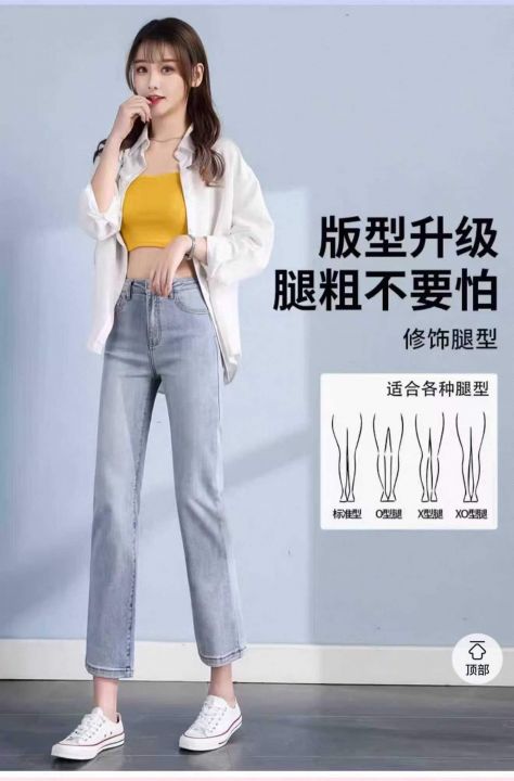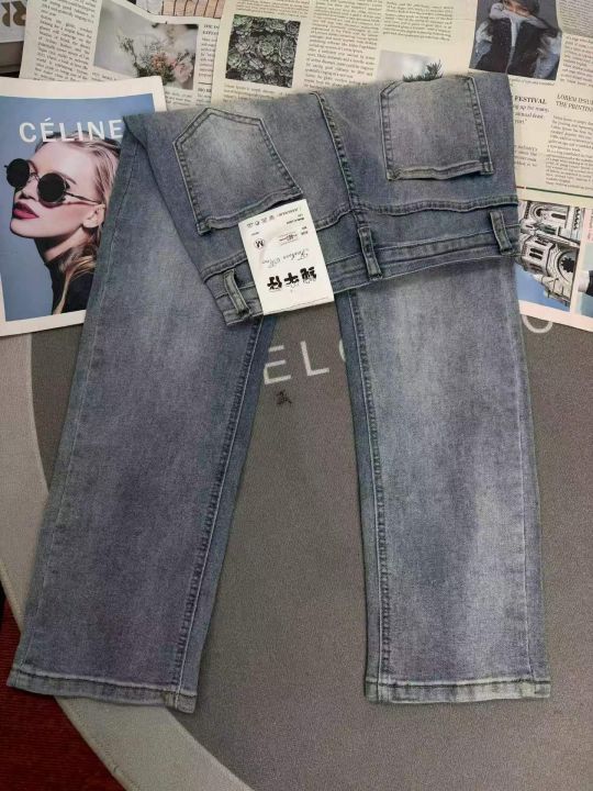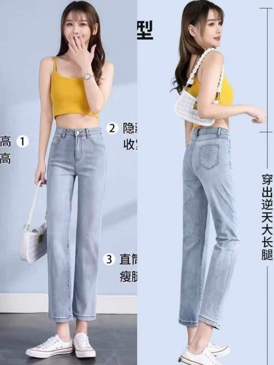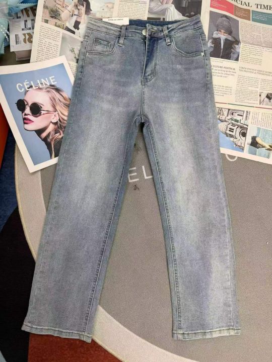浅色高腰显瘦小个子直筒弹力女士烟管牛仔裤,单款单色...