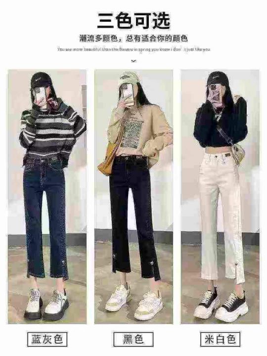 高腰弹力百搭显瘦开叉小个子烟管牛仔裤,整款2色,独...