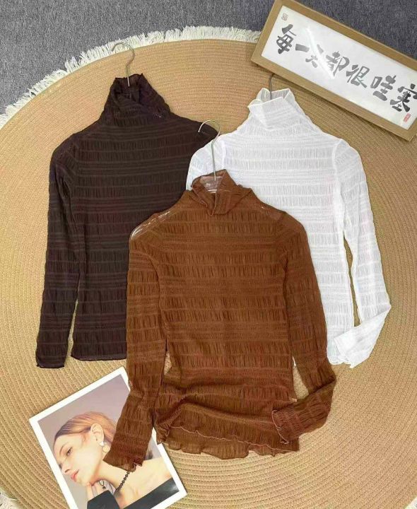 靓妹气质半高领网纱打底衫350件5.9,