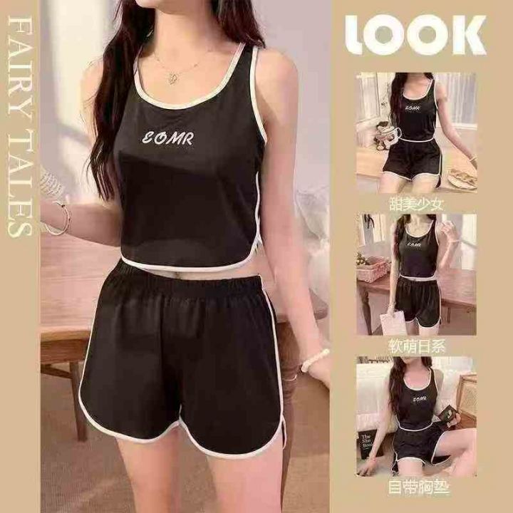 淘宝在售爆款女士冰雪丝运动套装,夏季性感高腰显瘦吊带背心短裤,上衣带杯...