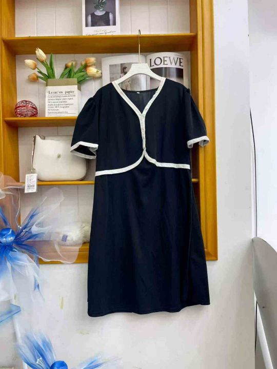 ① 小香风名媛拼接v领假两件宽松显瘦连衣裙!独立包装,码数S-2XL,数量100件左右,全清6.8元