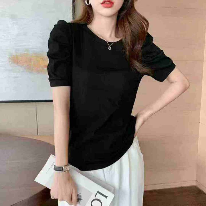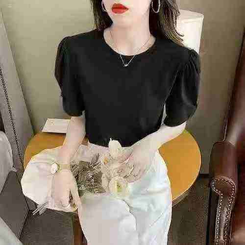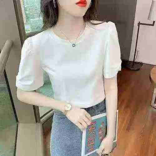 171件,冰丝螺纹短袖t恤女夏季2024新款女装圆领体恤法式泡泡袖洋气上衣,独立包装,码数M-2XL\'分货➕0.5,货号001#31