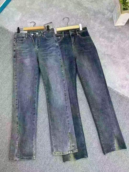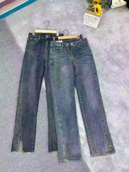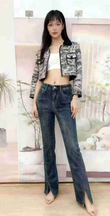 全清11.8开叉牛仔裤女高腰2025春秋新款修身显瘦高弹力...