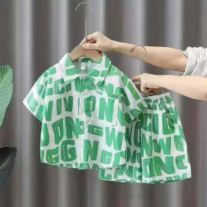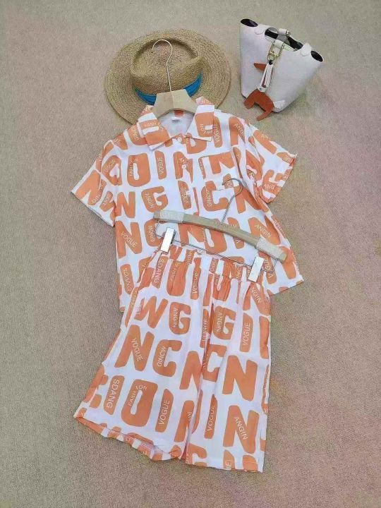 [月亮]:潮童复古风沙滩衬衫短裤两件套套装