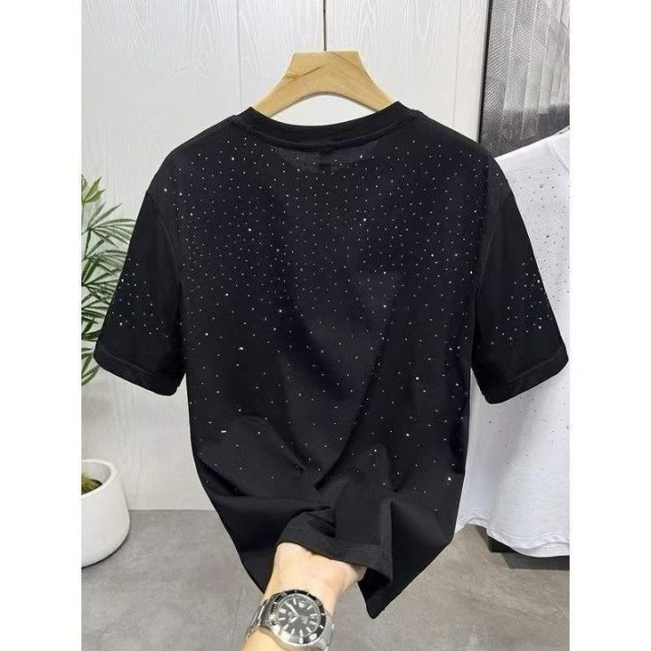 清9.8新款时尚满天星烫钻潮牌短袖T恤男夏季小众轻奢高端圆领上衣,数量95件...