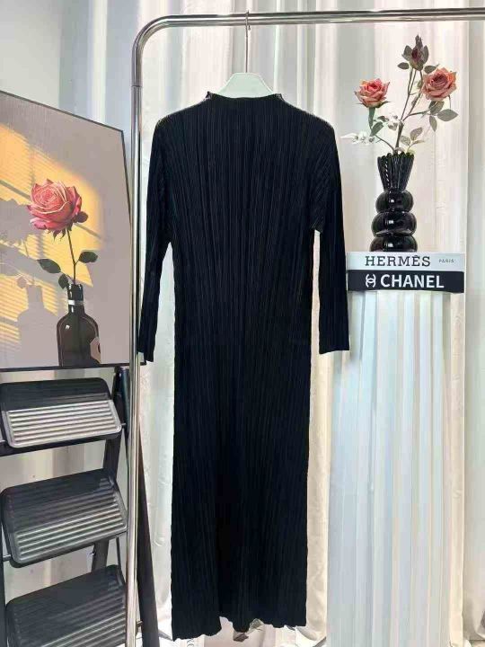 300件左右三宅高定褶皱基础款中领长袖中长款连衣裙,...