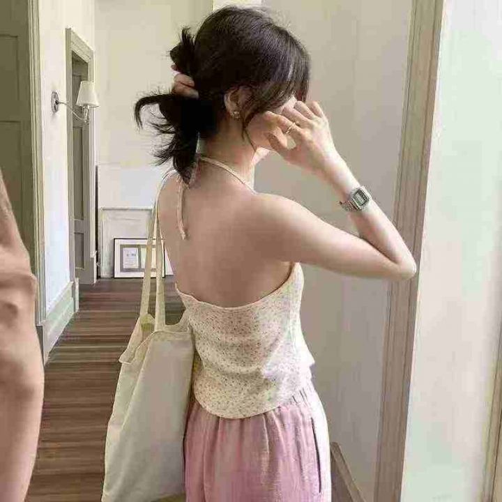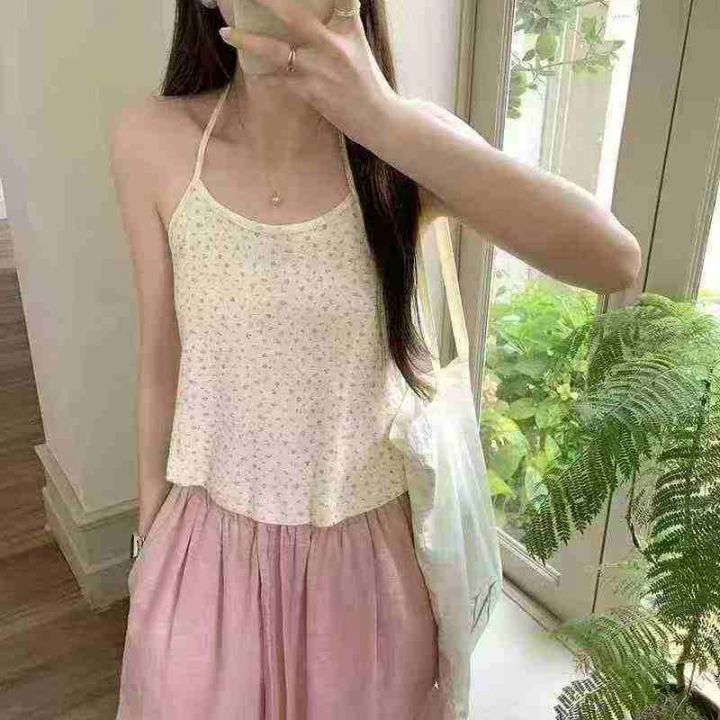 天猫在售款543件高品质清新甜美纯欲风碎花绑带挂脖背心,螺纹纯棉面料高弹力,单款单色,S-L,独立包装带吊牌