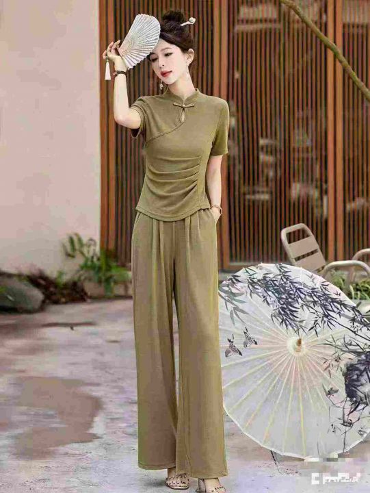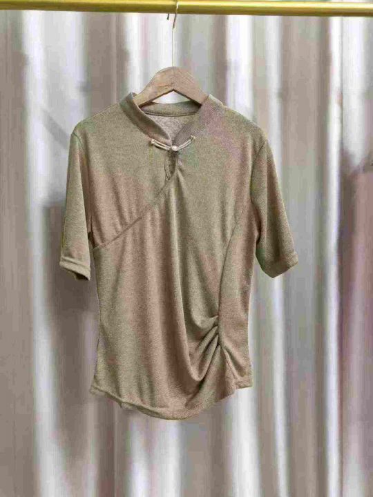 3️⃣南油货新中式国风靓妹立领盘扣褶皱短袖t恤632件...