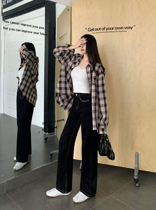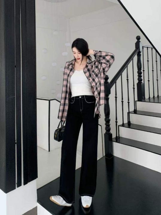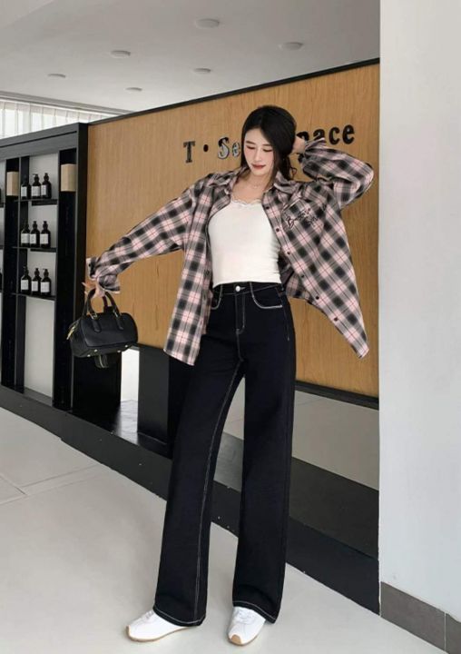 春夏季新款网红复古微胖MM弹力窄版直筒牛仔裤,独立包...