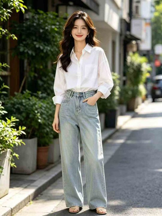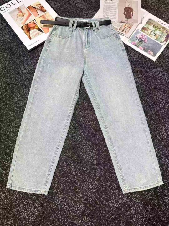 高品质皮带款蓝色牛仔裤 537件,全清12.8元,分货13.8元,码数:S/M/L/XL,正品独立包装,每条带有皮带,货品干净,浅蓝色男友裤牛仔裤女春秋季新款高腰2026显瘦直筒宽松哈伦裤