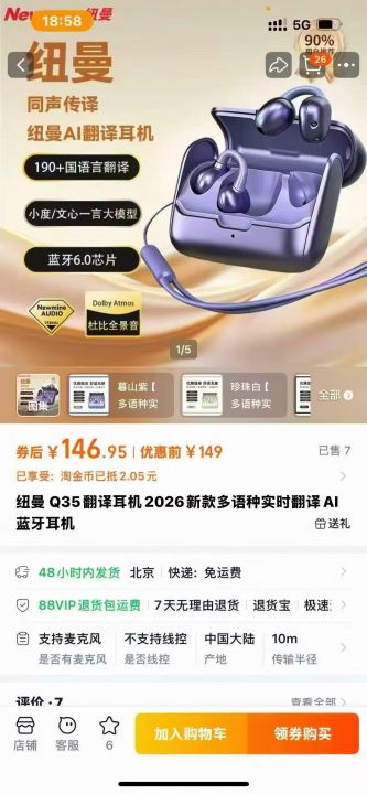 品牌纽曼翻译蓝牙耳机到货 1500 个,一箱 220 个...