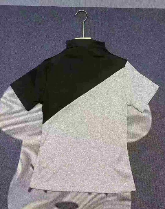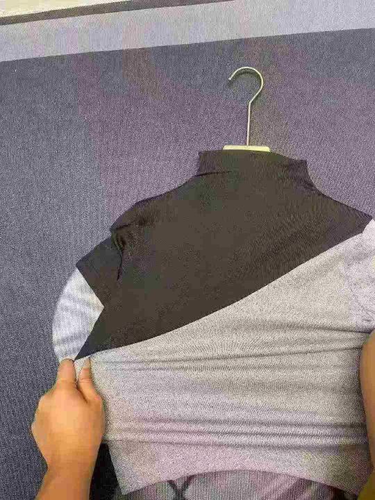 天猫在售款350件左右高品质夏季半高领拼色螺纹短袖T恤,单款单色,高弹力,码数S-XL,独立包装带吊牌