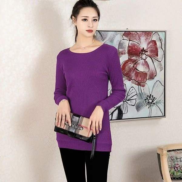 冬季净版简约宽松百搭加绒加厚中长款套头毛衣,独立包...