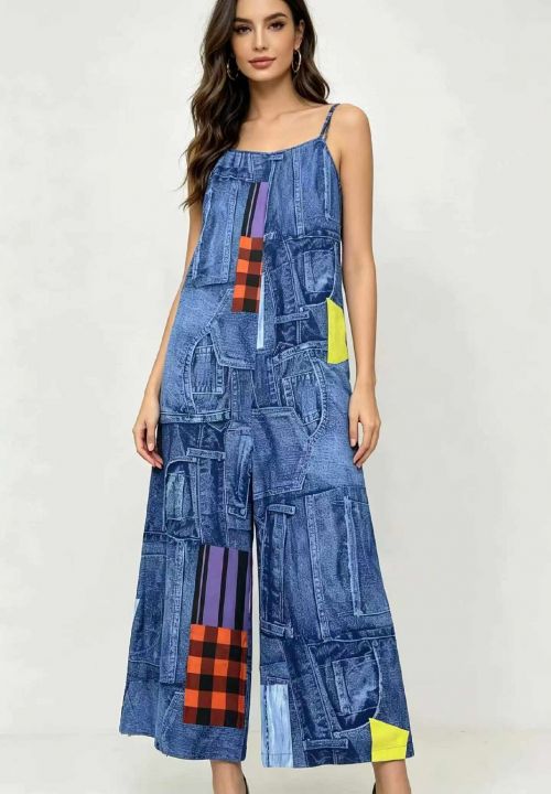 春夏季新款品牌外贸原单美式宽松复古连体裤,独立包装...