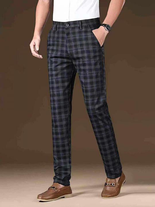 春季新款弹力男士格子直筒修身韩版潮流休闲西裤,独立...