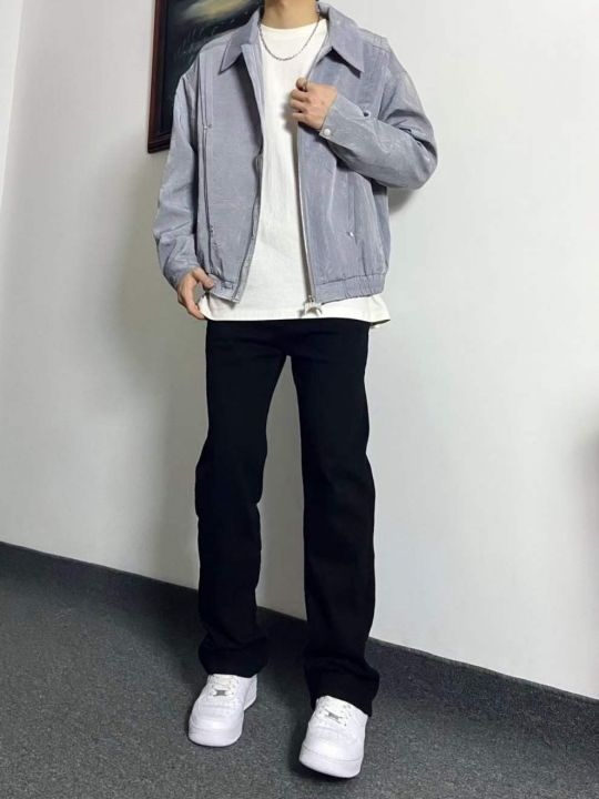 春夏季新款美式高街潮牌男士高弹力黑色宽松百搭显瘦直...