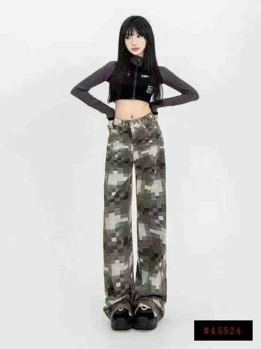 高街迷宫格阔腿牛仔裤女新款显瘦ins潮直筒工装拖地裤369条全清12.8元,码数...