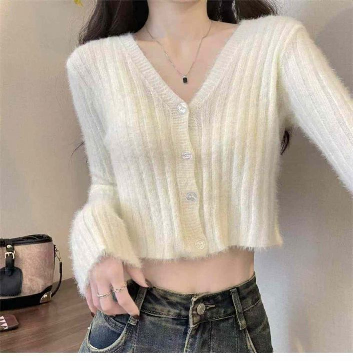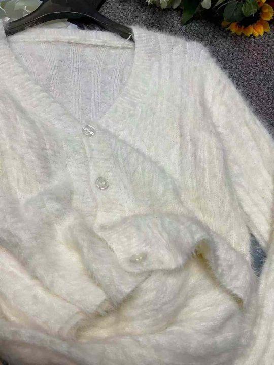 捡漏款,春季新款仿水貂毛V领单排扣针织毛衣开衫,独立包装,均码面料软糯舒适弹力大,50件左右,全清7.9元超低价秒杀!