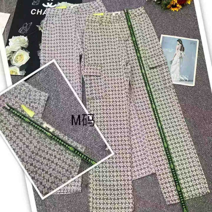 夏季新款设计感提花高腰显瘦气质百搭多袋直筒阔腿工装...